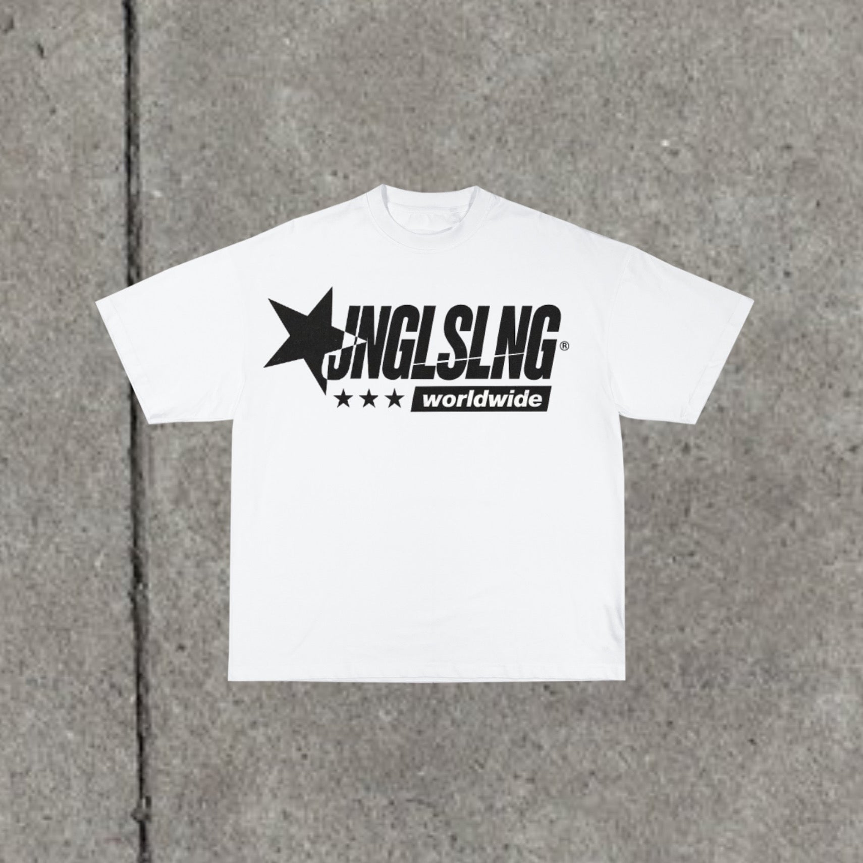 JNGLSLNG Worldwide Tee – a tribute to the global grind. Built for those who hustle from city blocks to international stages.